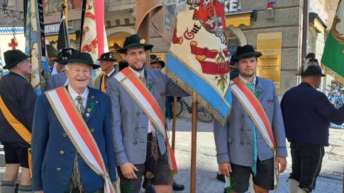 Trotz Temperaturen weit über 30 Grad nahm ein kleines Team der Fahnenabordnung des TSV Partenkirchen am 9. Juli beim Pfarrfest in Partenkirchen anlässlich des Goldenen Priesterjubiläums von Pfarrer Franz Sand teil.