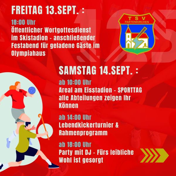 Der TSV 1899 Partenkirchen feiert sein 125-jähriges Jubiläum und lädt dazu alle Mitglieder, Freunde, Gönner, Sponsoren, Weggefährten, Legenden und natürlich auch alle Bürger von Garmisch-Partenkirchen ein.
