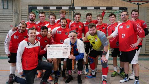 Die Handballmänner übergaben im Vorfeld des Heimspiels gegen den SC Unterpfaffenhofen/Germering am 25.03.2023 dem Verein Klinikclowns Bayern e.V. einen Scheck über 1111 Euro. Geld, das man über Eintrittsgelder eingenommen hatte und das nun einem guten Zweck dienen soll.