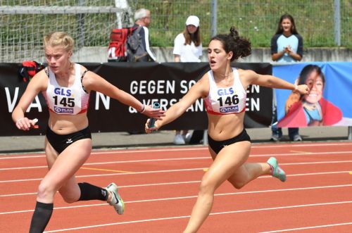 Gewonnen hatten die LAG-Talente schon im Vorfeld, wenn man bedenkt, wie hoch die Normen für die Titelkämpfe lagen. Der 4x100-Meter-Staffel mit Geidner, Nowak, Eveillard und Erhardt gelang das erst beim finalen Wettkampf vor der DM, auch die Steigerung der eigenen Bestleistung (51,28 Sekunden) war dafür vonnöten. Genau diese Zeit peilte das Quartett auch in Stuttgart an, wollte nochmals schneller sein – egal, für welche Platzierung das dann auch reichen mochte. Doch der Wunsch ging nicht in Erfüllung. Mit 51,54 Sekunden war nach dem Vorlauf schon wieder Schluss. Von Enttäuschung war bei den vier Athleten dennoch keine Spur. „Überhaupt nicht, sie waren wirklich happy“, erzählte Trainerin Franziska Kieweg. Auch den Umgang mit dem so ungewohnt professionellen Umfeld bei der DM meisterten die Nachwuchssportler. „Sie waren konzentriert und die Wechsel haben gut funktioniert. Sie haben das wirklich toll gemacht“, lobte Kieweg.